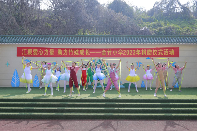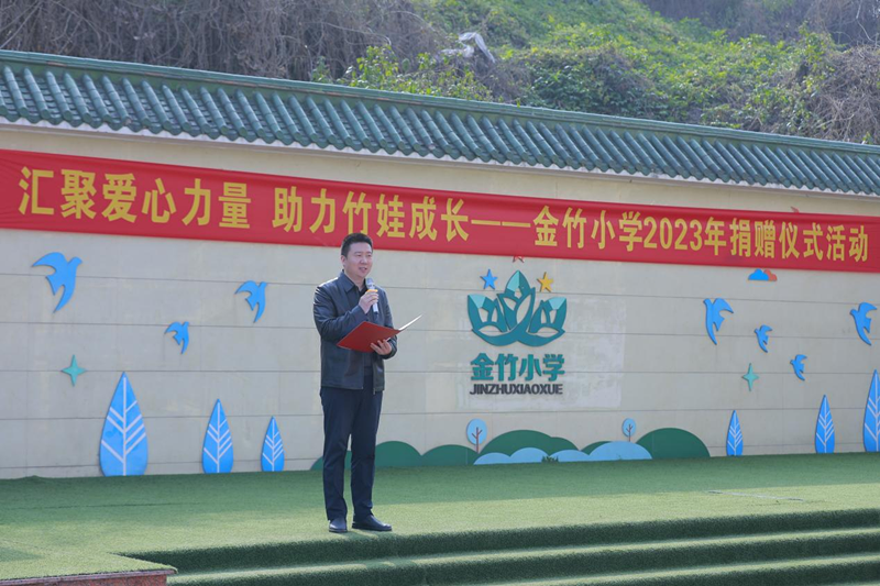 金竹小学校长李秀红代表全校师生,感谢巨成集团长达17年的爱心资助,并表示全体老师将会扎根农村、潜心教育,用深厚的教育情怀、锐意的进取精神和扎实的专业能力引领一代代竹娃健康成长。